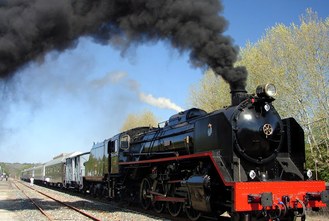 Mi bisabuelo fue maquinista de esa línea. Contaba mi tio Joaquín que en invierno las nevadas en la rampa eran tremendas y que las locomotoras jadeaban lentamente. Heliodoro Calatayud iba armado. De vez en cuando los lobos hambrientos merodeban la línea. En San Guim, desenganchan una de las dos Mikados. La otra nos remolcará de mediodía a medianoche hasta Miranda de Ebro. En la noche y en las curvas el jadeo y los fuegos de la locomotora. Te duermes en la litera. Despiertas a las cuatro bajo la marquesina de la estación de León. Una English Electric de la serie 7700, verde, al frente. No lo sabes aún pero esas locomotoras recorrieron las líneas de trocha ancha en Argentina y en la India. Son locomotoras CC espectaculares, que rememoran otras épocas y que nos llevan hasta Ourense por los desfiladeros del Sil.