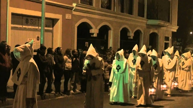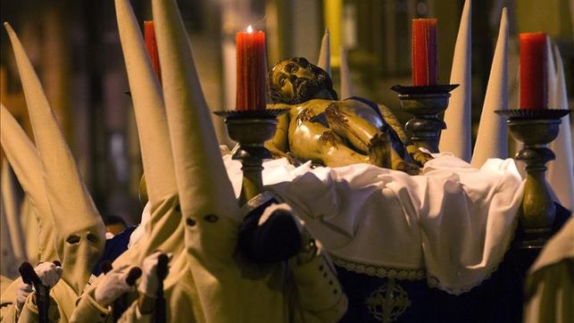 En Semana Santa, organizan un ciclo procesional de ocho días de duración, cuyo núcleo más significativo se encuadra entre el miércoles por la tarde con el Juramento de Silencio ante el Cristo de las Injurias y la vuelta de la Soledad, el sábado de Gloria, a su retiro en la Iglesia de San Juan (1). No quiere esto decir que los demás días sean de relleno. No podré jamás olvidar el impresionante desfile de La Hermandad Penitencial del Santísimo Cristo del Espíritu Santo con sus túnicas zurbaranescas y su minimalismo musical.