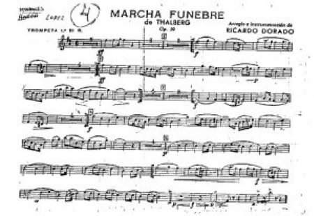 Partitura de la marcha fúnebre de Thalberg, armonizada por Ricardo Dorado