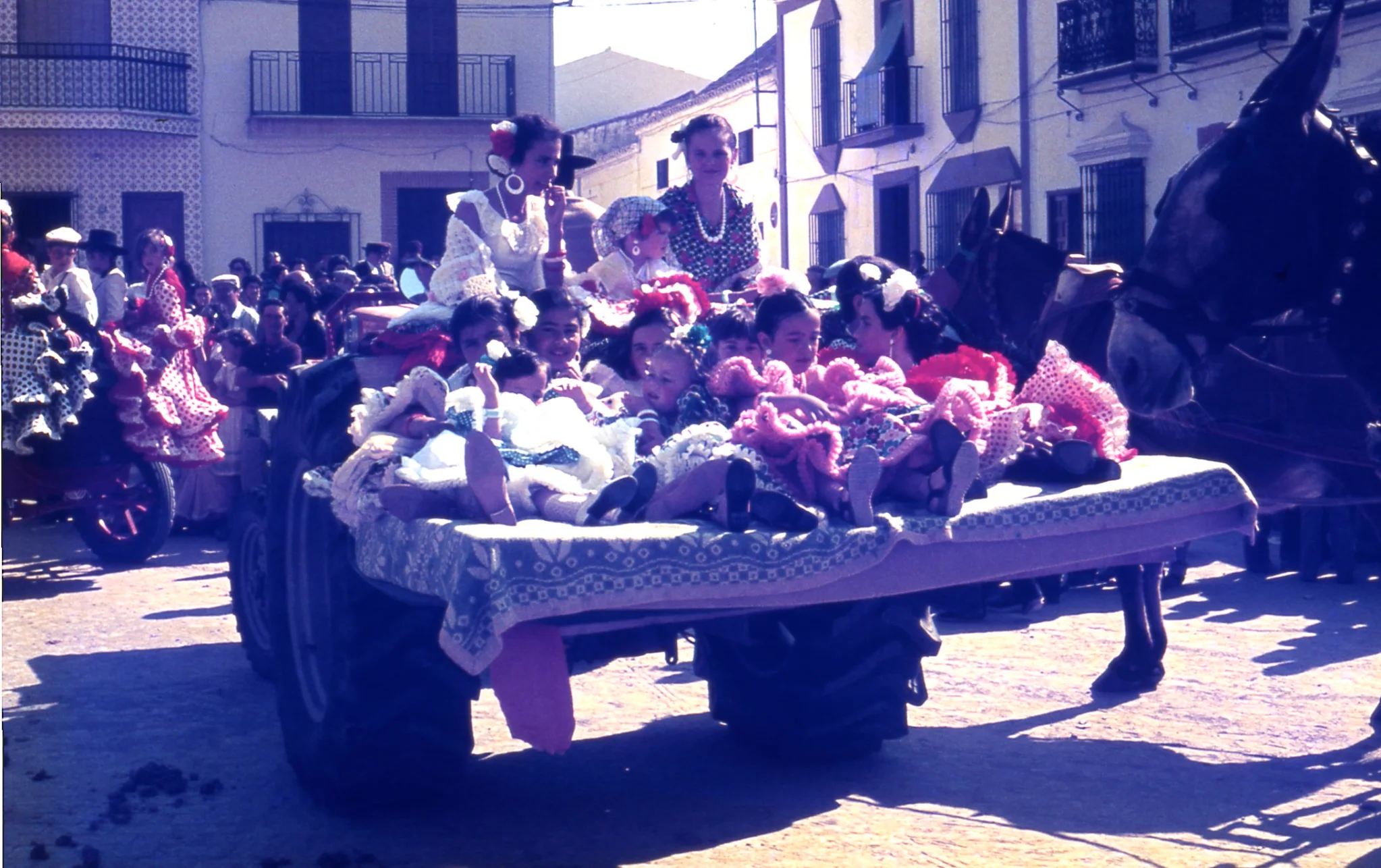 Carmelo Lisón rodó, en 8mm y en super8, una muy amplia documentación visual sobre el Corpiño en Lalín y en Santa Marta de Ribaterme (Galicia), durante su trabajo de campo en los sesenta y setenta. El fondo está preservado en la Fundación Lison Macdonald y una parte se digitalizó y me atrevo a afirmar que tanto su documentación visual como la que propongo sobre el Rocío son, seguramente, los materiales más extensos rodados por antropólogos entre 1960 y 1980, aunque si existe una amplia documentación visual sobre el Rocío recogida recientemente en el libro de Francisco José García Espina Miradas cinematográficas sobre la Romería del Rocío: implicaciones sevillanas., publicado en2021 por la Diputación de Sevilla. Incluye una exhaustiva recopilación del material documental o de ficción que ha tenido algun tipo de difusión formal. Javier Coronel y Juan Márquez – en Almonte y Villamanrique respectivamente -, han realizado búsquedas sistemáticas, sobre todo de archivos particulares. Estos fondos privados, rodados a menudo en materiales sub-estandard 8, 9,5 o 16mm suelen tener un considerable valor heurístico en la medida que reflejan la percepcíón de sus autores sobre lo que narran visualmente.